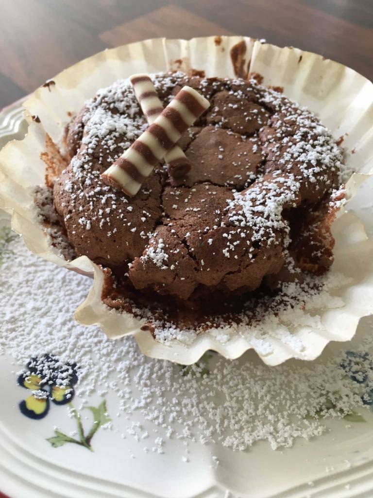 Die genaue Backzeit variiert natürlich je nach Ofen und davon, welche Größe eure Förmchen haben. Ich empfehle euch, einen der Kuchen nach 8 – 10 Min. zu stürzen und dann zu entscheiden ob die anderen noch etwas müssen oder ob es euch so gefällt. (Achtung: die Küchlein garen noch ein wenig nach, auch wenn man sie aus dem Ofen nimmt). Essbar sind sie auch, wenn sie noch sehr flüssig sind, es ist reine Geschmackssache. Ich habe einige Versuche gebraucht, um die für mich passende Konsistenz herauszufinden…