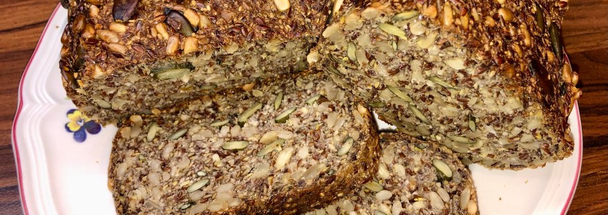Heute teile ich ein Brot-Rezept, dass wunderbar in die stärkefreie UND vegane Ernährung passt und schmeckt. Zutaten 150 g Sonnenblumenkerne 60 g Kürbiskerne 60 g Chiasamen 120 g geschrotete Leinsamen 30 g Flohsamenschalen 35 g gemahlene Mandeln 1 EL Tahini Sesammus 1/2 TL Salz 1 TL Zitronensaft 1 TL Ahornsirup 300 ml lauwarmes Wasser Zunächst… Weiterlesen Veganes Saatenbrot